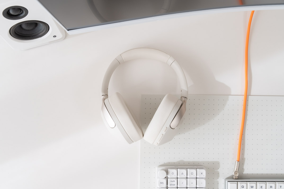 リビングの一角で作業していることもあり、仰々しいヘッドホンをつけていると、どうしても家族との距離感を感じてしまい敬遠してしまっていました。また、イヤホン以上にブラックカラーが多い印象で、どうも選択肢になりにくかったんですよね。